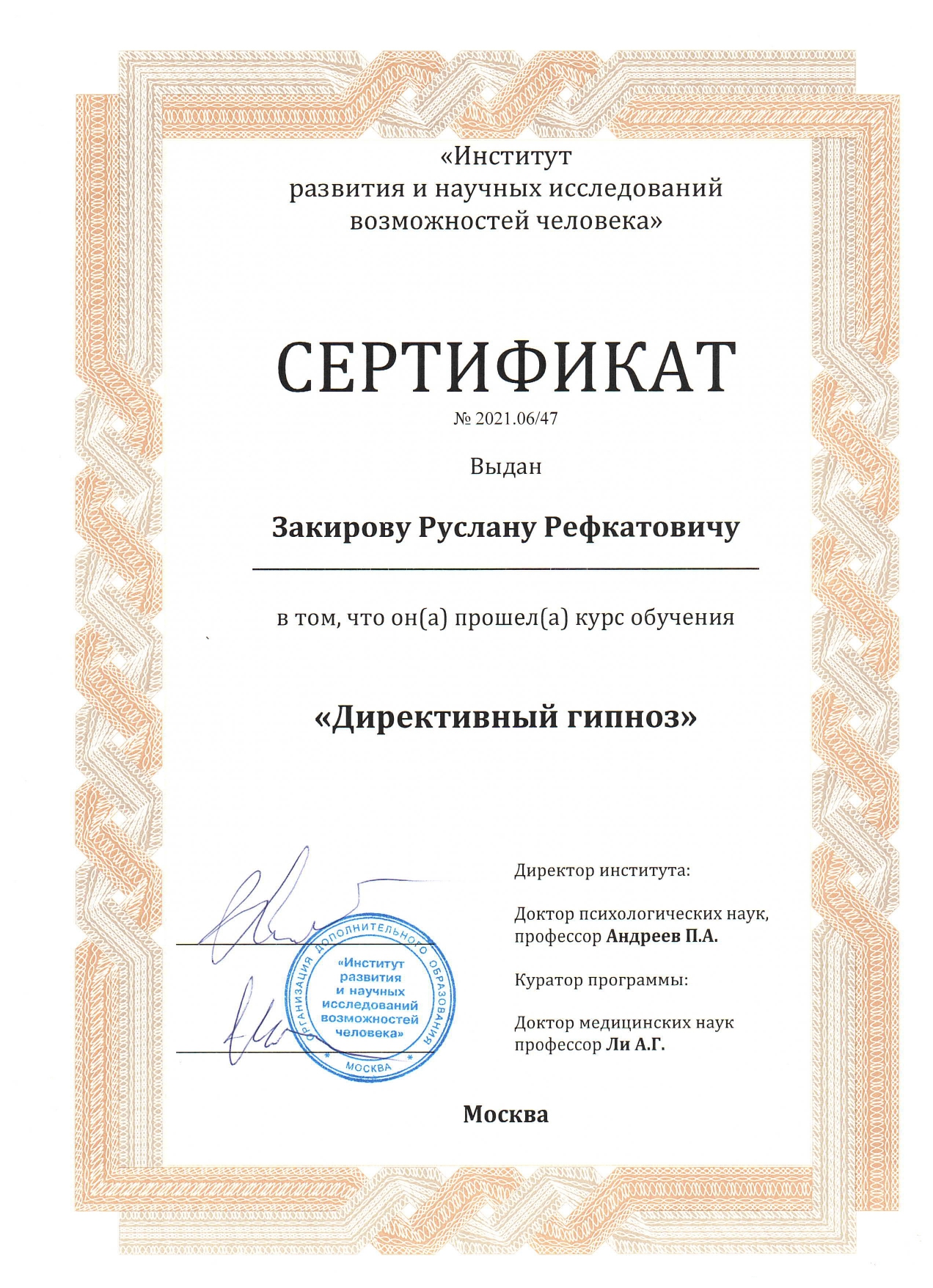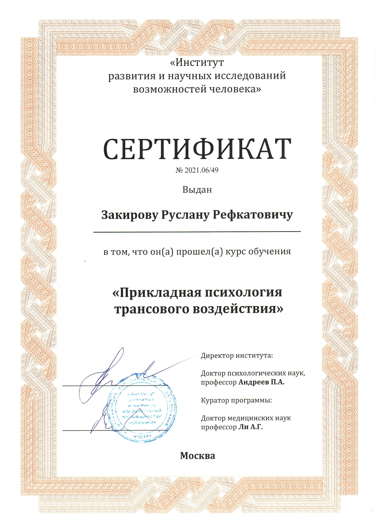 Меня зовут Руслан Закиров. Я кандидат психологических наук и гипнотерапевт с опытом работы более 5 лет.